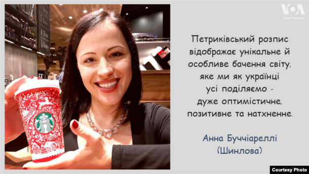 Анна Буччіареллі (Шинлова) стала однією з 13 фіналістів конкурсу, що проводився у грудні 2016 року американською кавовою компанією та мережею кав’ярень Starbucks. Дизайн Анни, що містить унікальні елементи українського петриківського розпису, тепер на чашках у кав’ярнях Starbucks в 75 країнах світу.