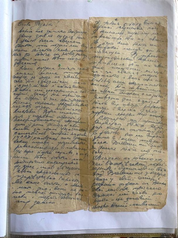 “Знай, ти прийшла в світ в час найжорсткішої війни Українського народу проти північної Москви. Вже шостий рік у нерівній боротьбі з більшевицьким окупантом день у день кладуть свої голови за ідею Української Самостійної Собороної Держави найкращі сини українського народу… їх вже тільки пригорща, а між ними твій батько й мати…”, – йдеться в листі.