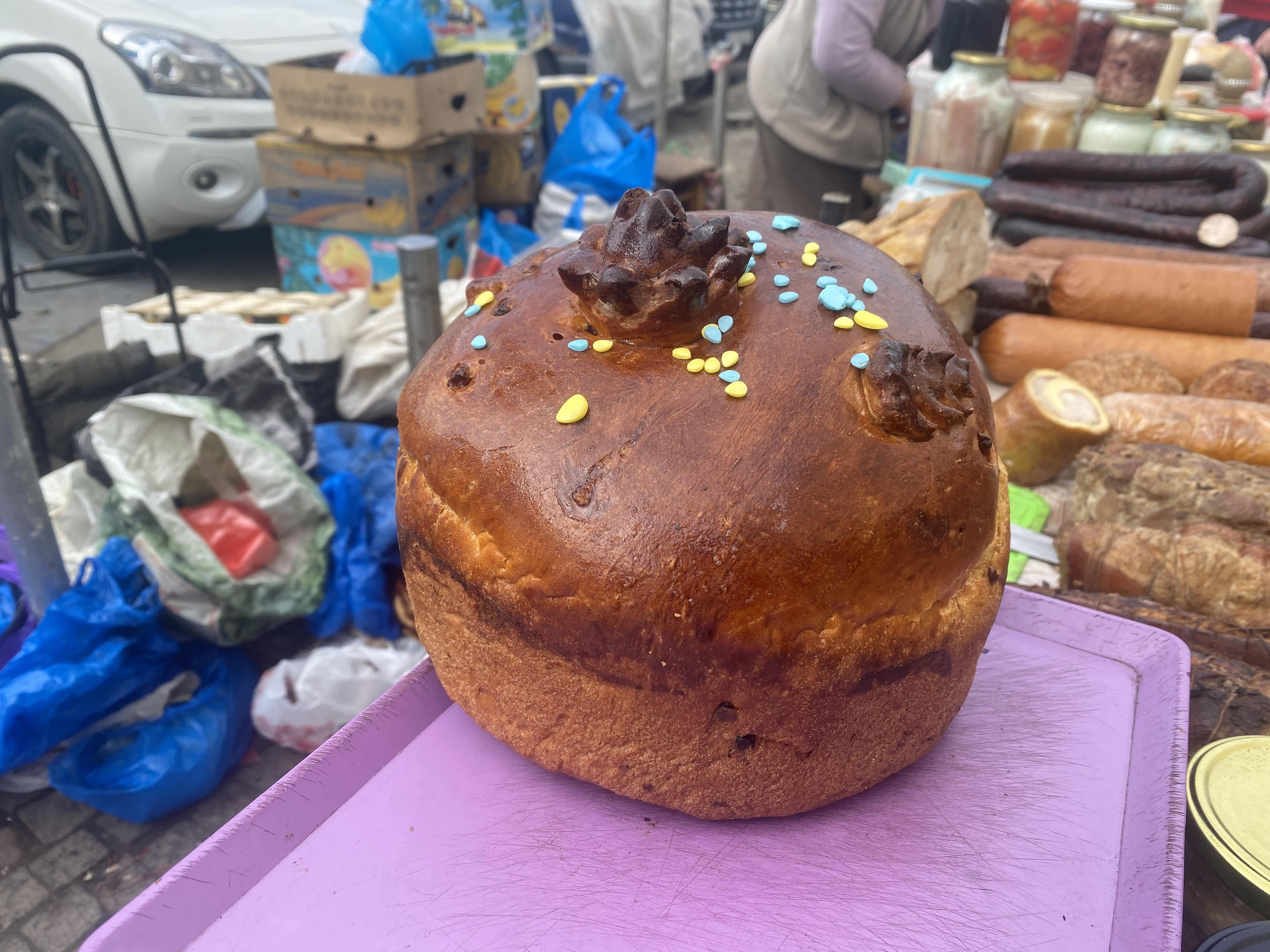 “Галка” ж попрямувала до Марії, кругом якої зібралося чимало людей, обираючи ковбаси на великодній стіл. Жінка була у дуже гарному та піднесеному настрої – в очікуванні свята. Вона з радістю показала паску, яку випікала спеціально для своїх дітей.