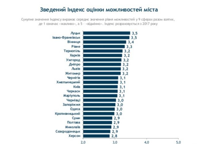 Натомість за можливостями щодо якісної освіти Івано-Франківськ є лише на восьмому місці, після Луцька, Вінниці, Львова, Хмельницького.