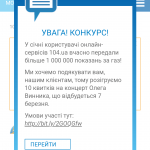 Газовики вирішили подякувати клієнтам розіграшем 10-ти квитків на концерт відомого українського співака Олега Винника, що відбудеться 7 березня у Києві. Переможця визначать 5-го березня.