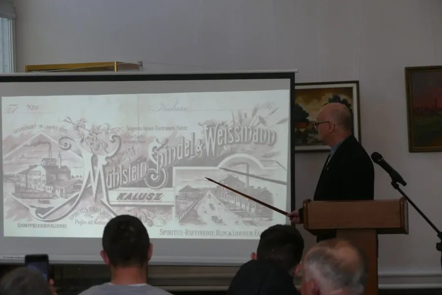 З доповіді Івана Тиміва можна було дізнатися і про понад 200 найменувань цього пінного напою. Найдавніше пиво останньої чверті ХІХ століття темне: як пише на овальній етикетці — “чарне”. На верху зображений король Гамбрінус, який і нині присутній і на імпортних етикетках. “Експортове” калуське пиво користувалось попитом в Угорщині, Польщі, та Франції. Не поступалось за якістю чеському, баварському та львівському напою. Калуська броварня мала високу якість пива як слабоалкогольного напитку.