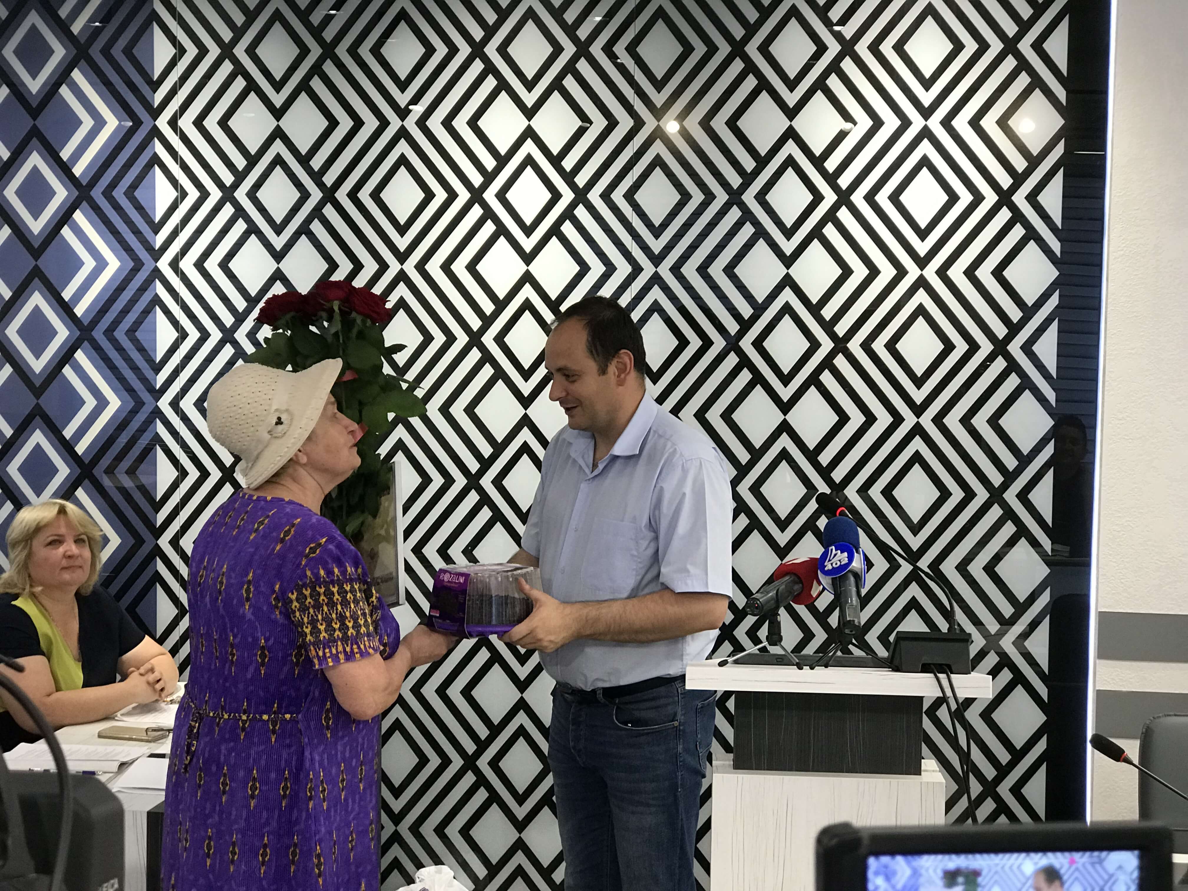 На початку міськвиконкому міський голова Руслан Марцінків відзначив родину – подарував квіти та торт.
