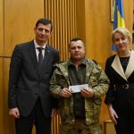Голова обласної ради Олександр Сич та голова ОДА Світлана Онищук вручили посвідчення бійцям-добровольцям третьої окремої стрілецької роти першого окремого батальйону добровольчого українського корпусу “Правий сектор” – Олександру Чепурі з Івано-Франківська, Василю Арсеничу з Косівщини, Віктору Пелипенку з Івано-Франківська, Андрію Гудашу з Івано-Франківська, Василю Леканову з Узина, Сергію Мерінову з Івано-Франківська та Любомиру Харишу з Рогатина.