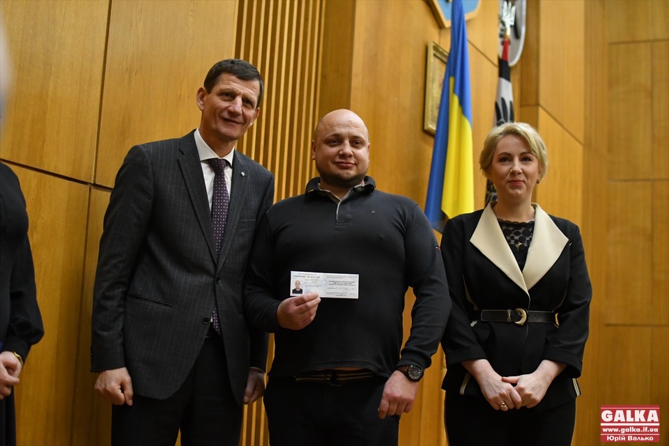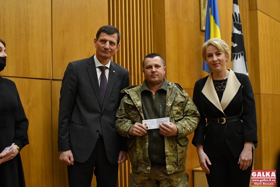 На початку засідання 11-ої сесії Івано-Франківської обласної ради восьмого демократичного скликання вручили посвідчення бійцям-добровольцям, які несли службу в зоні ООС/АТО.