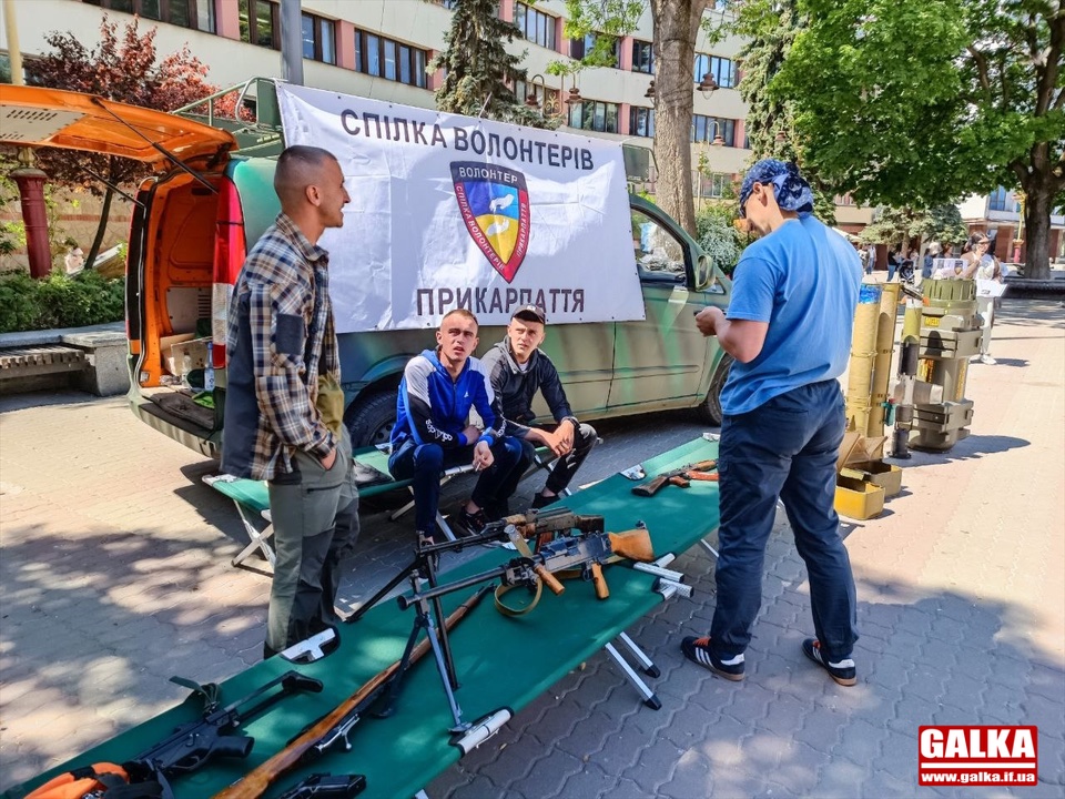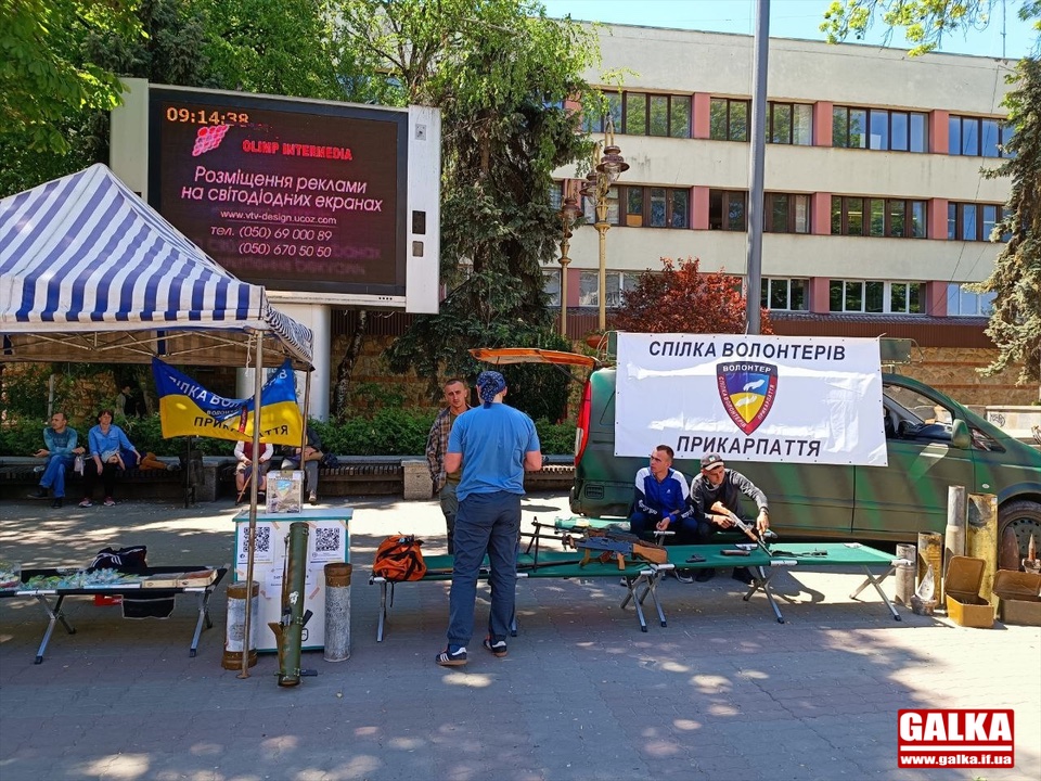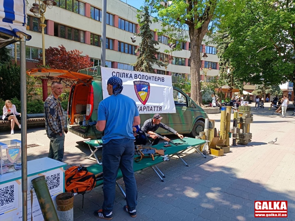 20 травня на Вічевому майдані в Івано-Франківську громадська організація «Спілка волонтерів Прикарпаття» влаштувала виставку зразків зброї, якою воюють українські захисники проти російських окупантів.