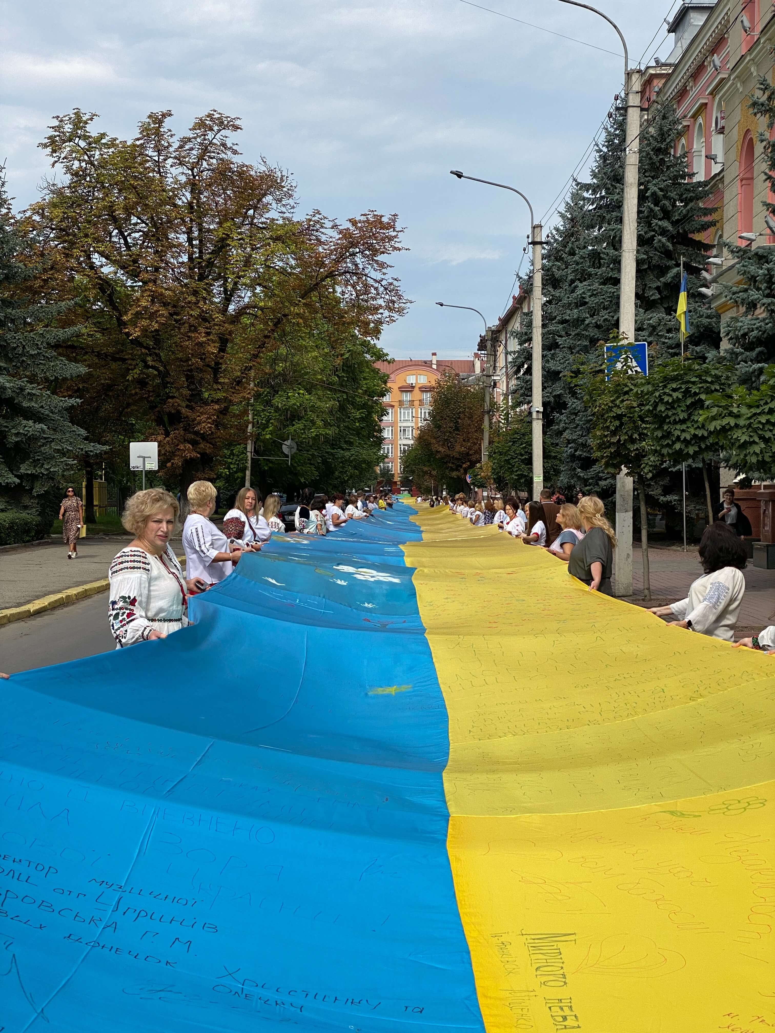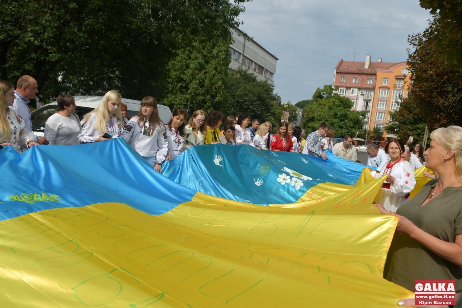 В Івано-Франківську на вулиці Сахарова 23 серпня розгорнули один з найбільших прапорів України.