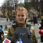 Начальниця штабу №3 територіальної оборони Івано-Франківська Оксана Рубаняк каже, прийшла на акцію разом з побратимом, аби підтримати ЗСУ.