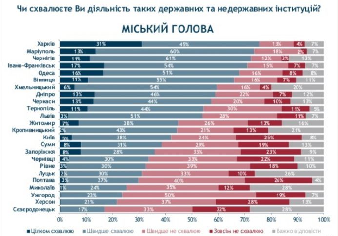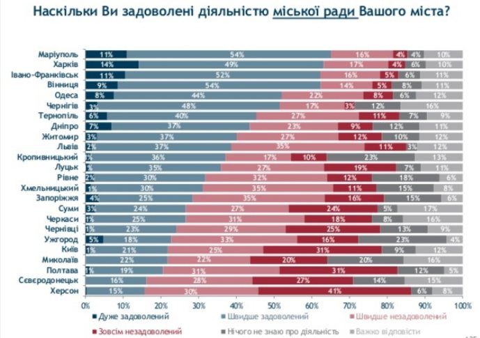 Такими є результати Четвертого всеукраїнського муніципального опитування соціологічної групи «Рейтинг» від імені International Republican Institute (IRI). Опитування відбулось у 24 містах України.
