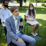 «Дуже пишаюся, що є такі дорослі, талановиті випускники й випускниці. Ви молодці. Тому я із задоволенням хотів з вами поспілкуватися, привітати вас. Одна надія на таких, як ви. Тому що нове покоління – це не просто молоді люди, а освічені люди, носії знань», – сказав Володимир Зеленський.