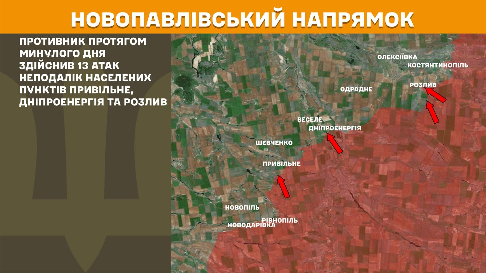 На Новопавлівському напрямку противник протягом минулого дня здійснив 13 атак неподалік населених пунктів Привільне, Дніпроенергія та Розлив.