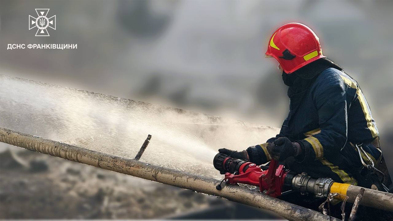 Сотня рятувальників на Прикарпатті ліквідувала пожежу після російського обстрілу (ФОТО)