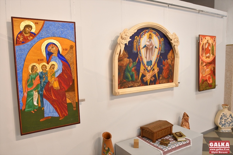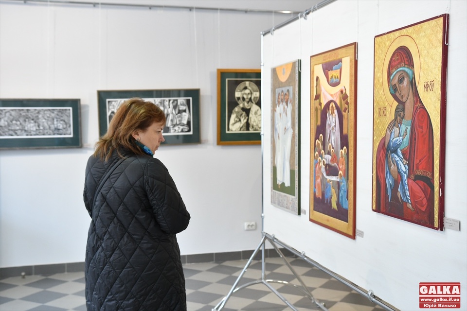 Значну частину експозиції виставки складають ікони, написані на дошці, що покрита левкасом та в техніці живопису на склі. Попри характерну для іконопису канонічність, студенти у вирішенні своїх робіт творчо інтерпретують сакральну тематику, поєднуючи сучасну стилістику із глибоким розумінням іконографії й духовного змісту ікони.