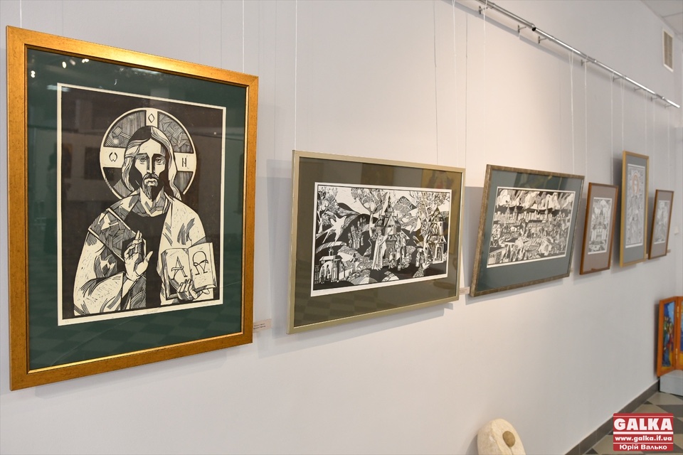 Органічним доповненням до експозиції творів іконопису є численні графічні твори в техніці ліногравюри.