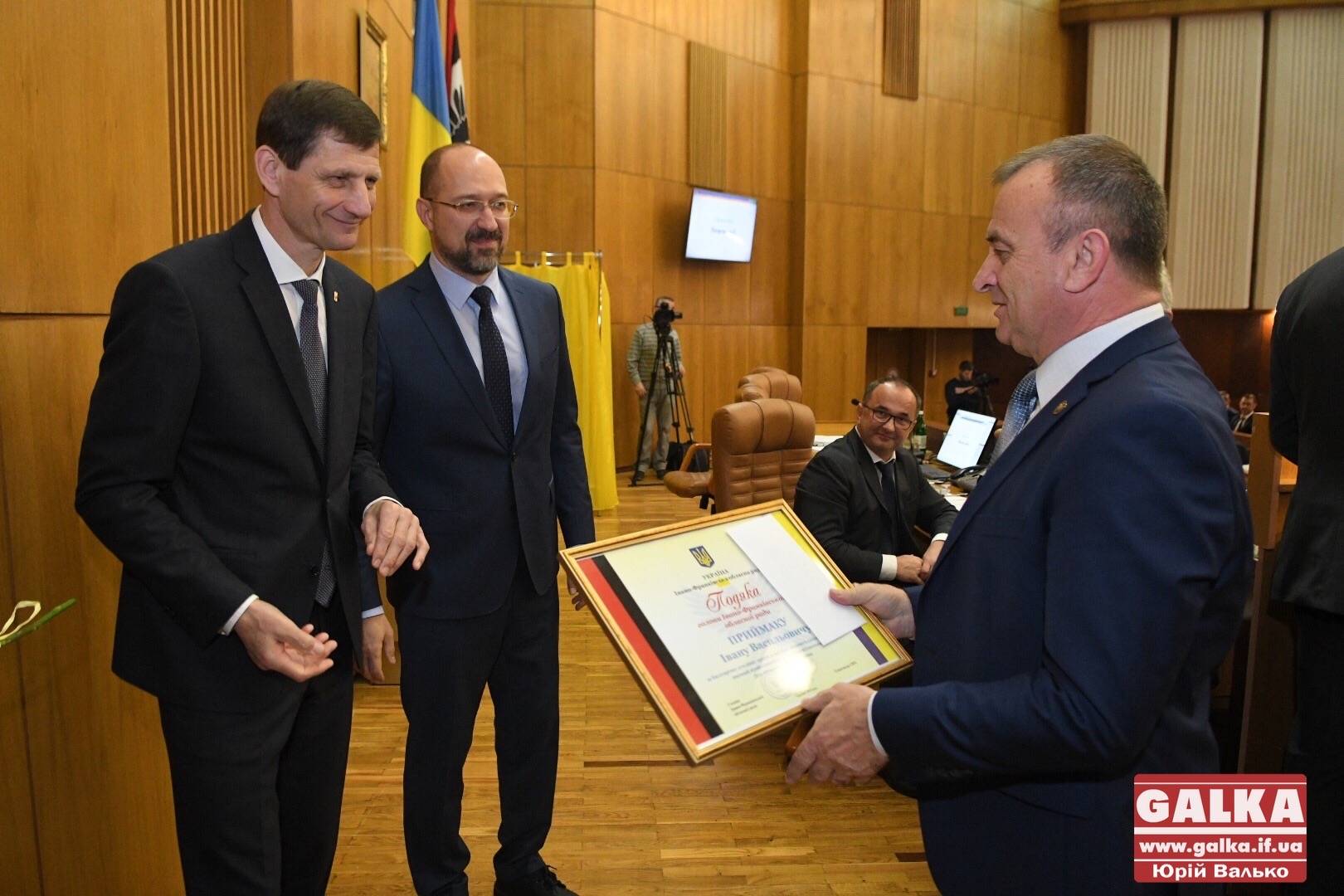 На початку тридцять третьої сесії обласної ради сьомого демократичного скликання голова обласної ради Олександр Сич і голова ОДА Денис Шмигаль відзначили прикарпатців.