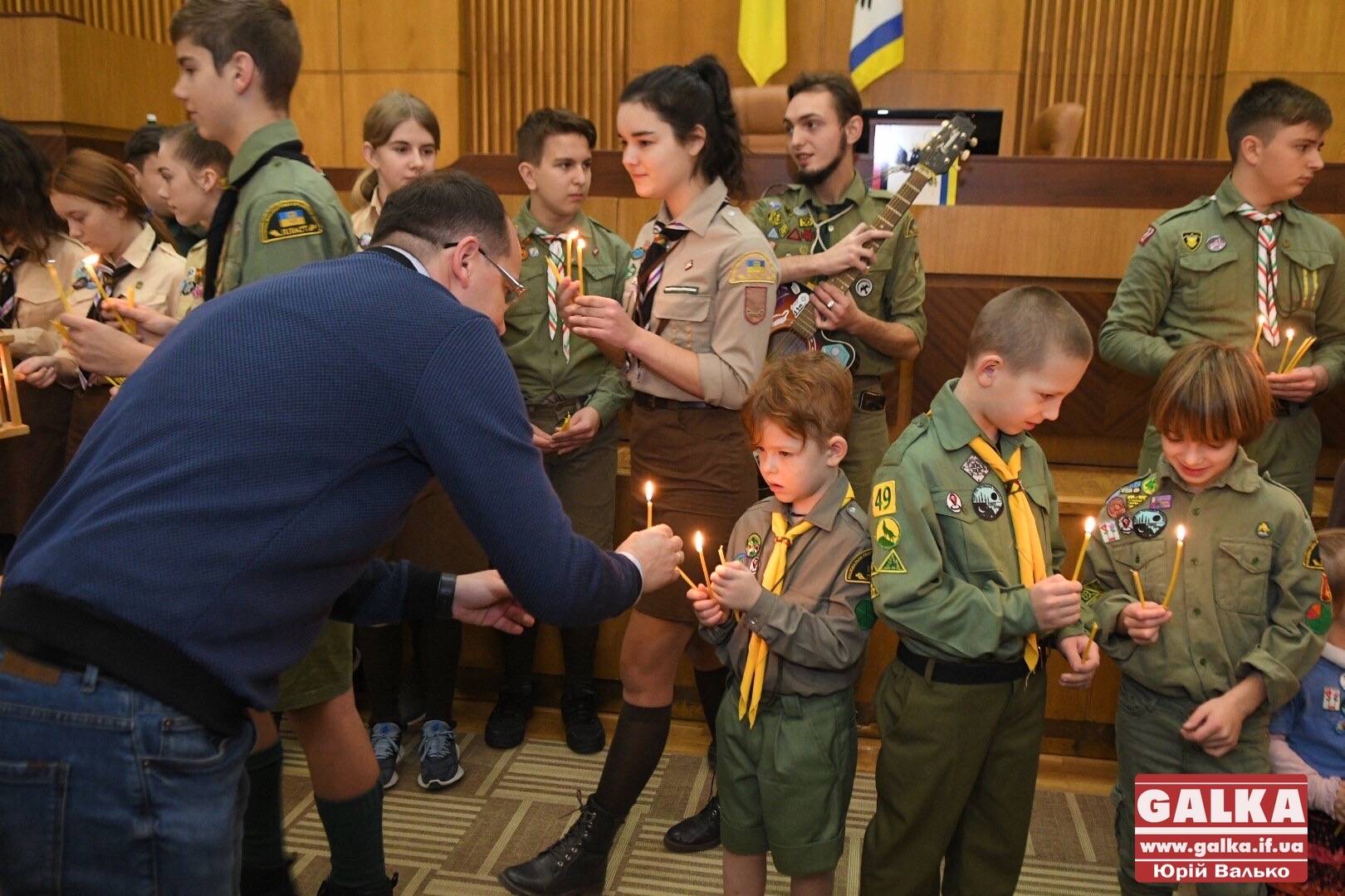 Перед початком сесії міської ради 18 грудня франківські пластуни принесли у залу засідань Вифлеємський вогонь.