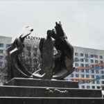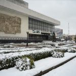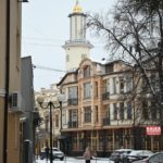 Ось так зараз виглядає центр міста. На вулиці вітряно, а температура повітря опустилася до -2 °C, тож люди закутуються у теплі шарфи й вдягають капюшони.