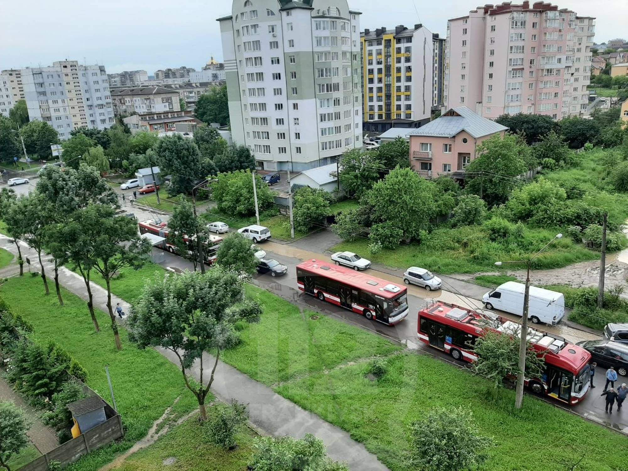 Повідомляється, й про те, що внаслідок сильних опадів у селі Угринів розлився потік. Очевидці у телеграм чаті-112 зазначають, що вода з села Угринів починає добиратись і до мікрорайону Пасічна. Через це вулиця Тролейбусна у заторах, водії шукають шляхи об’їду. Станом на 20 годину вода починає потрохи спадати.