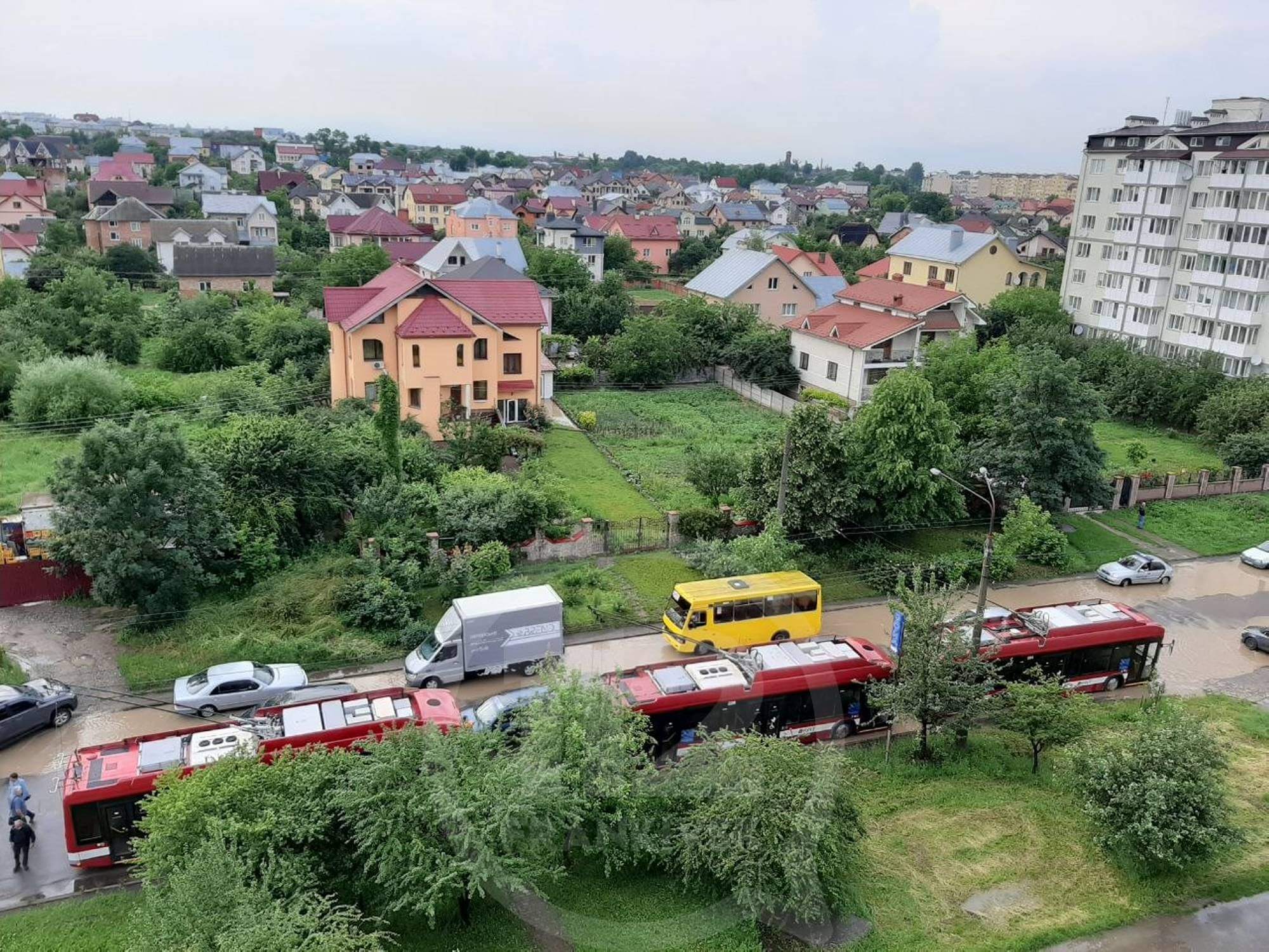 Як пішоходи, так і машини не могли пересуватись через величезні калюжі, а подекуди, й цілі вулиці перетворилися на “озера”.